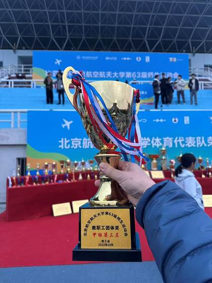 秋高气爽,丹桂飘香。在北京航空航天大学第63届师生运动会赛场上,北航资产公司代表队以昂扬斗志与卓越团队协作精神,在多个项目中斩获佳绩——荣获教职工团体奖甲组第三名,并同时将"最佳风尚奖""趣味比赛优胜奖"收入囊中,成为运动会上一道亮丽的风景线。