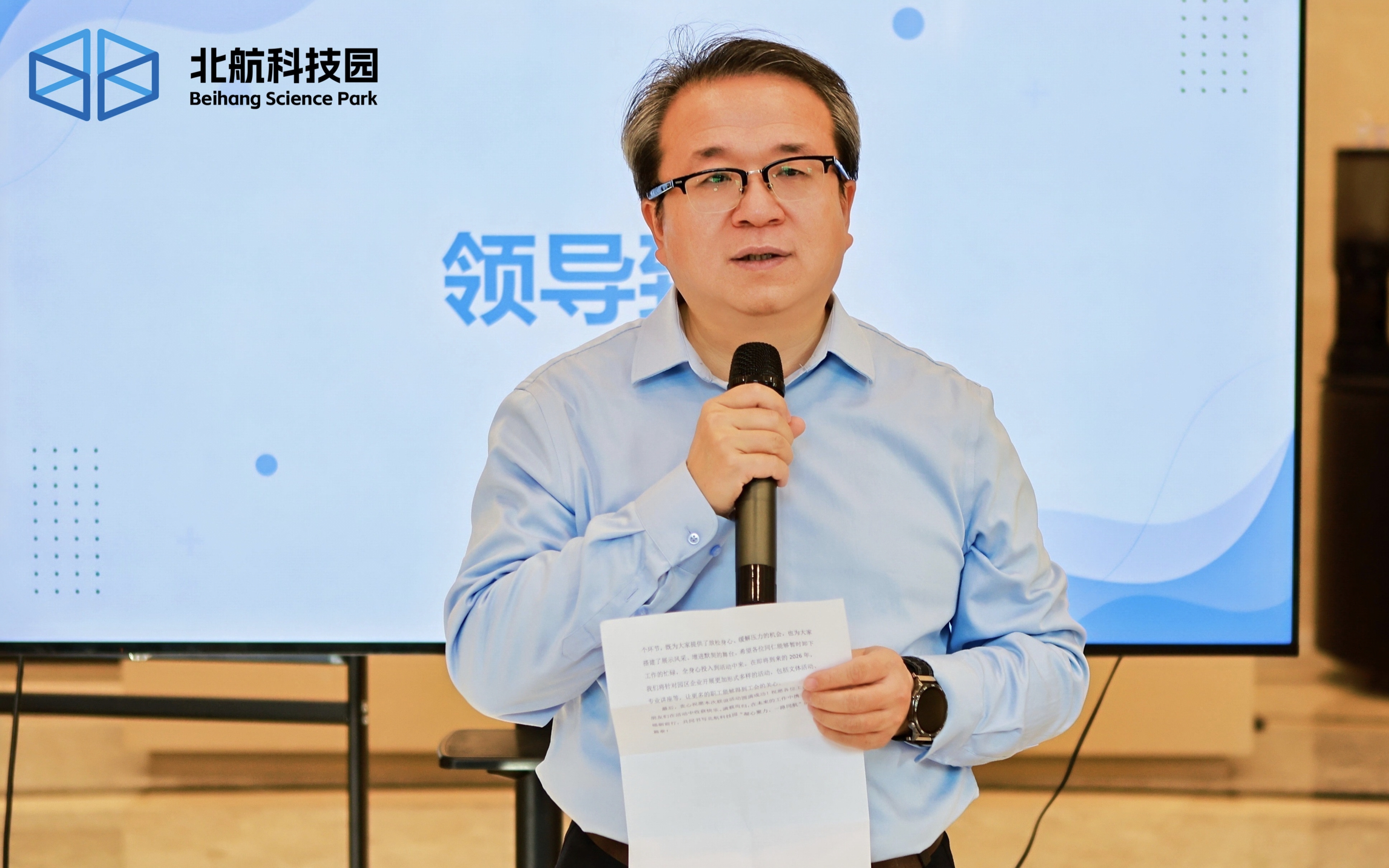 活动于下午2点正式开始,来自园区各入驻企业的工会干部们齐聚一堂。首先进行的是签到环节,嘉宾们在签到处陆续签到,现场气氛热烈而有序。随后,活动在主持人的热情开场中拉开序幕,北航资产公司工会主席白致铭发表了致辞,强调了此次活动的重要意义,并对参与活动的工会干部们表示热烈欢迎。