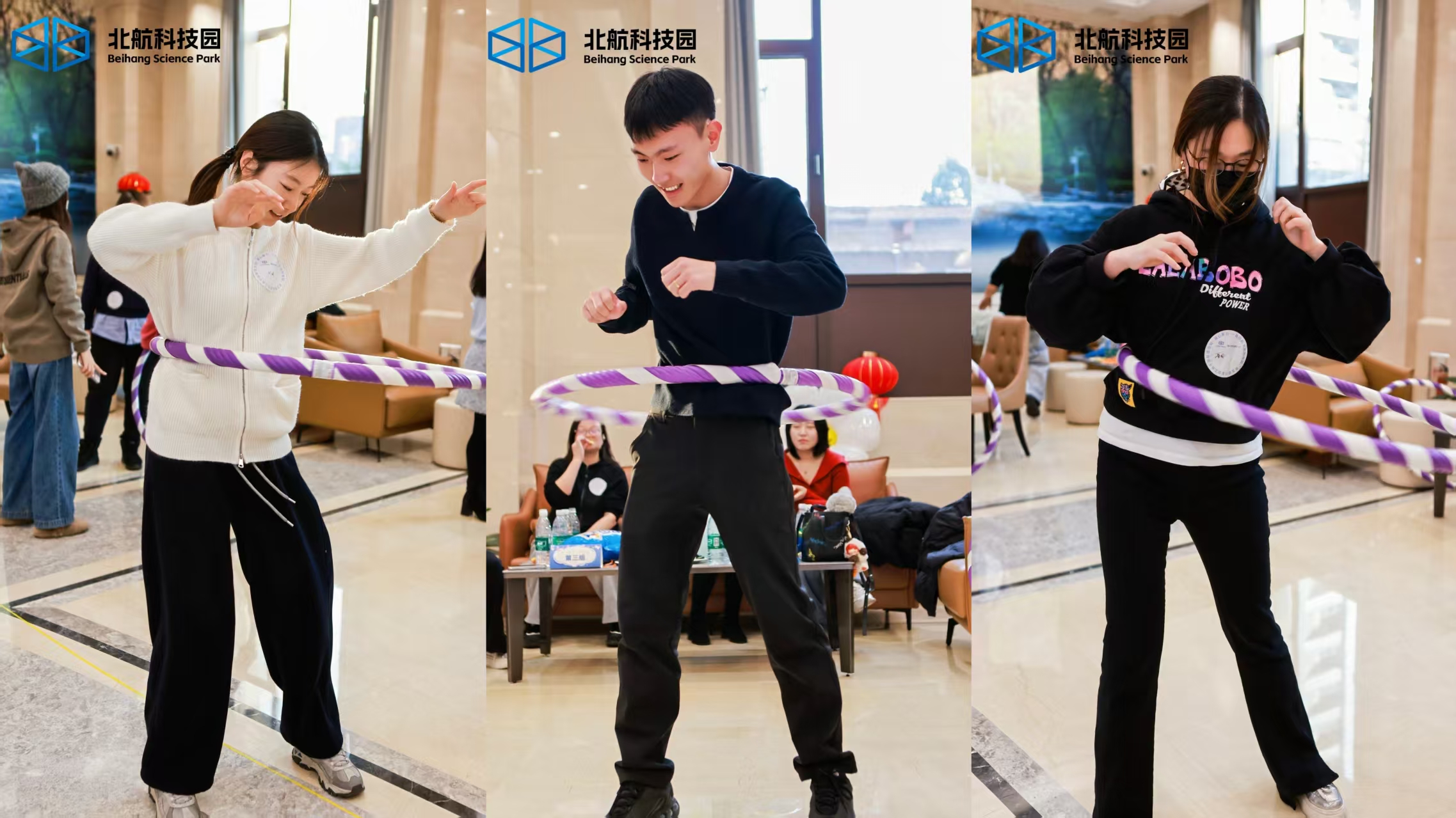最后是“动起来·互动比拼”环节,参与者们再次分组,进行投壶和呼啦圈比拼。投壶比拼中每组轮流参与,设置了基础分值,现场计分紧张刺激;呼啦圈比拼则设有“单人持续转”和“小组接力转”两种形式,大家积极参与,欢声笑语不断。
