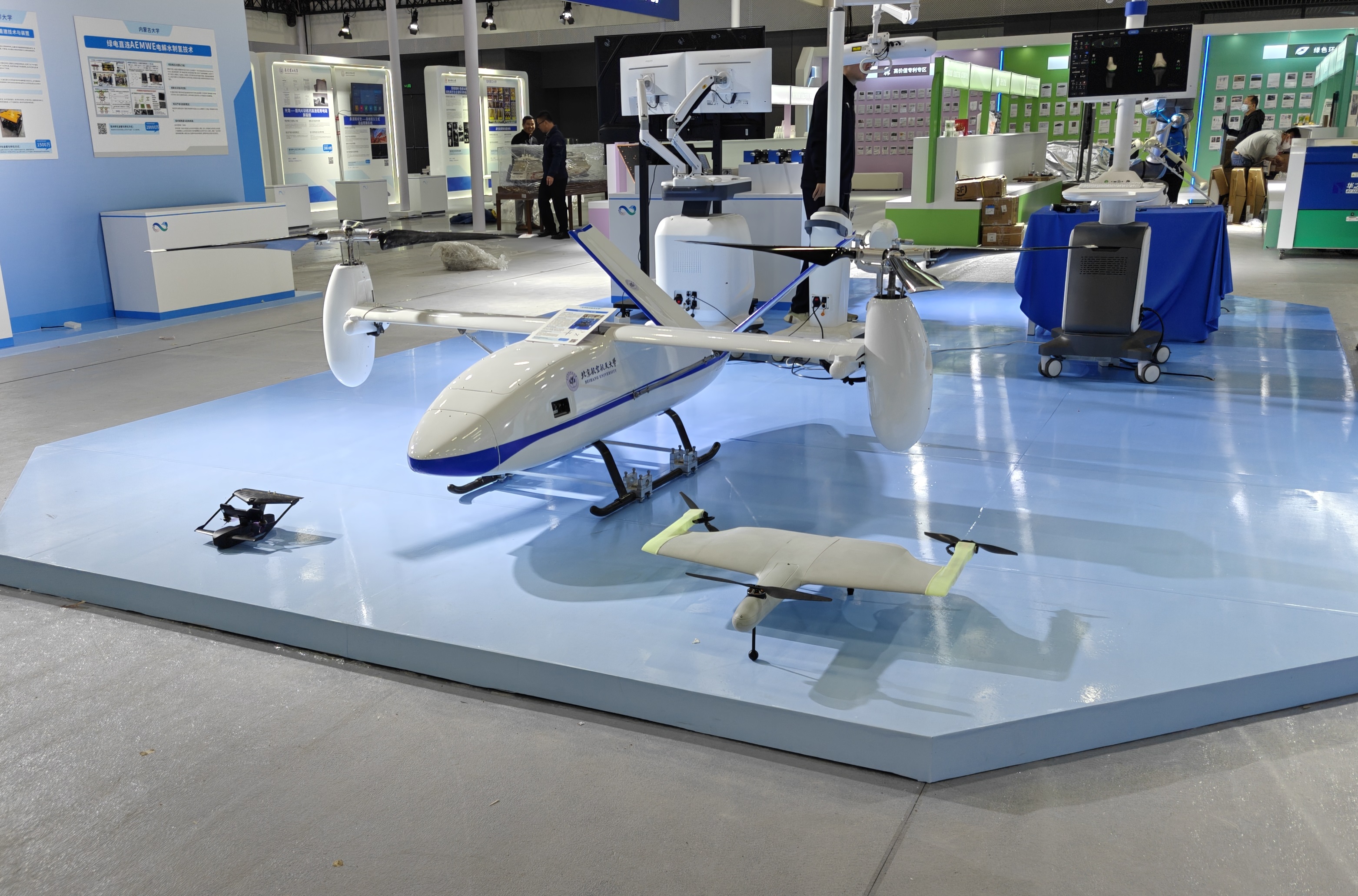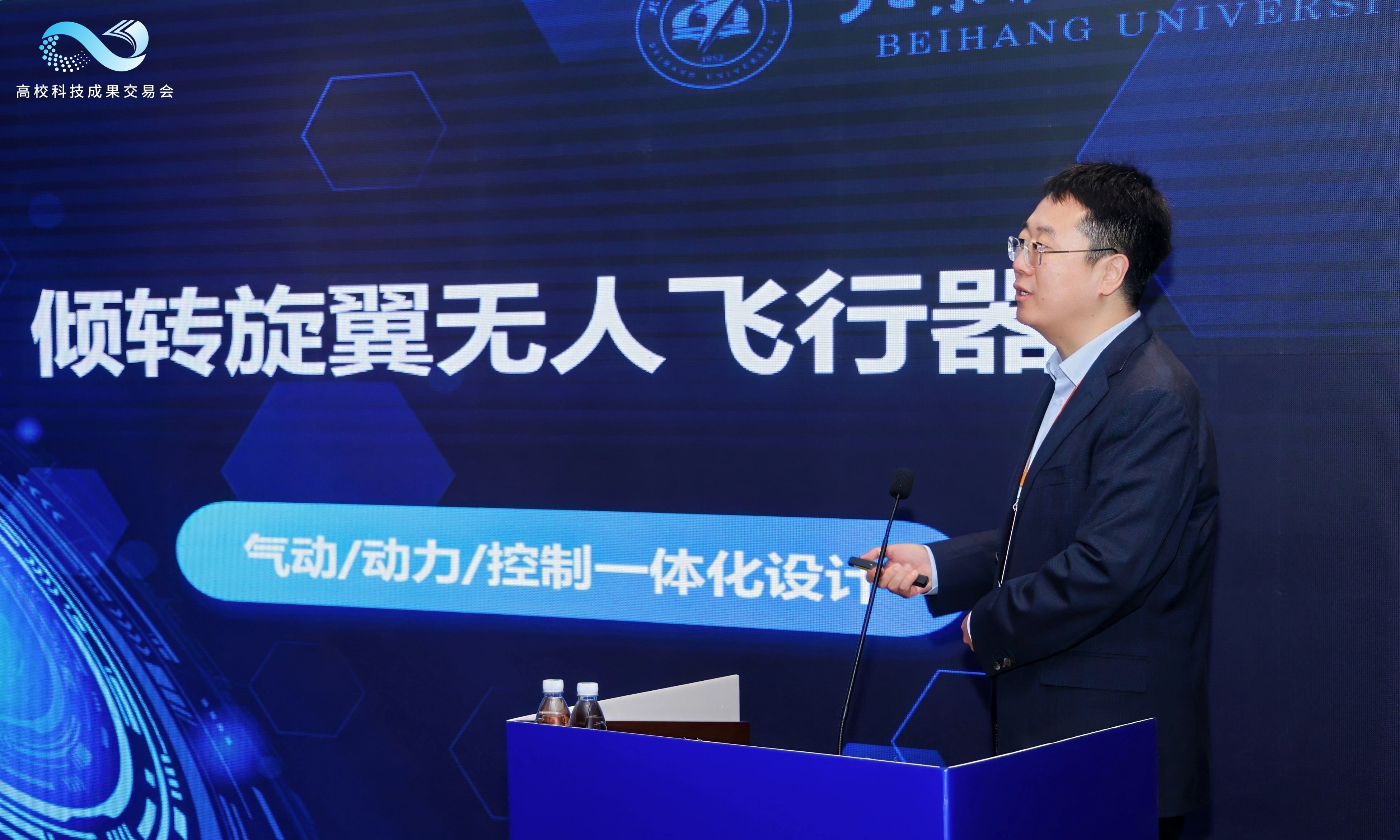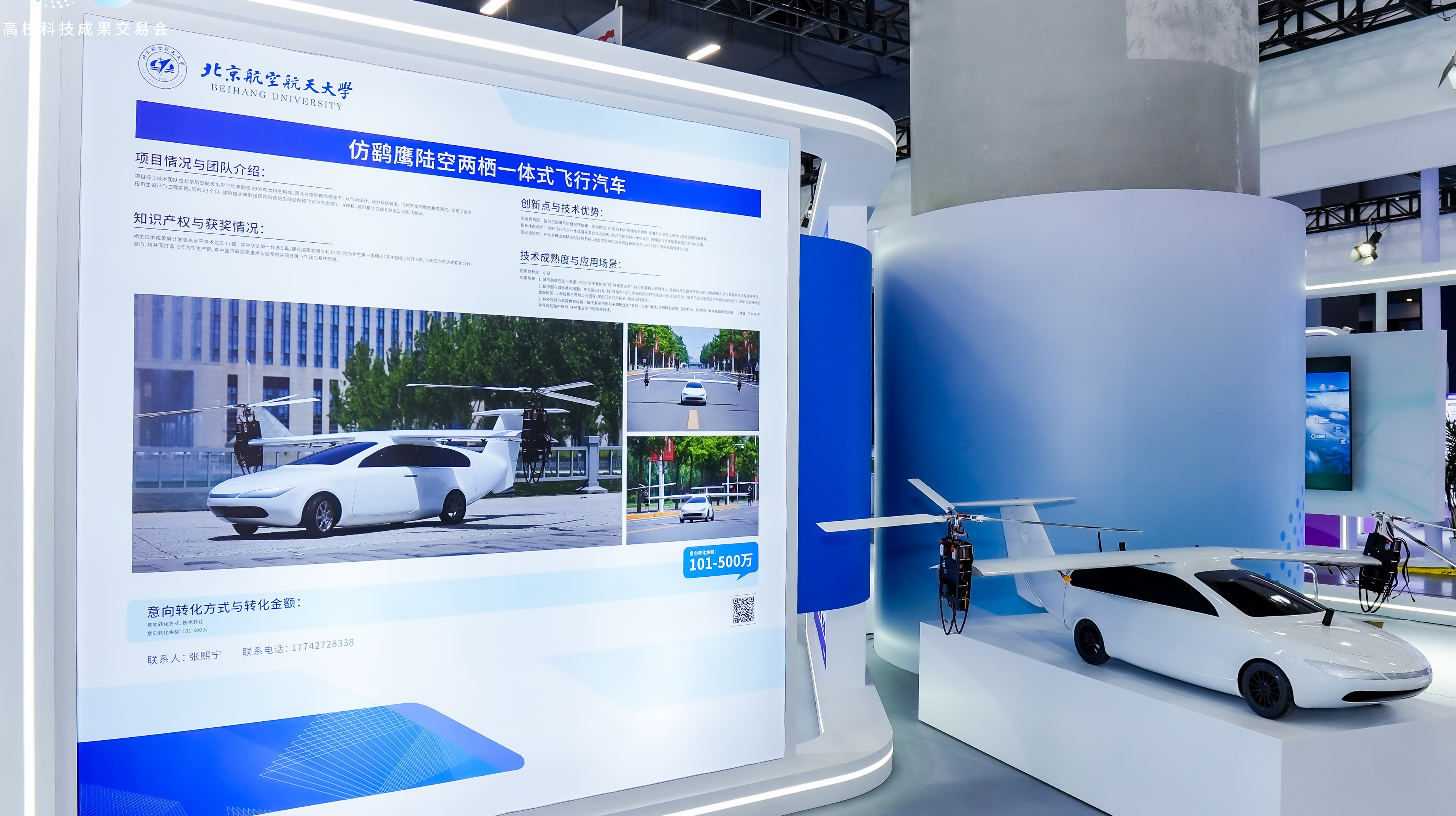 本次科交会学校共携13项科技成果集中亮相。其中,“倾转旋翼无人飞行器”与“面向复杂环境的卫星即时数据服务系统”两项成果通过路演推介;“空间电推进系统”、“低空高光谱无人机多源遥感系统”、“基于水空两栖无人机的近海设备智能化巡检系统”等成果以实物与展板的形式推介展示;“仿鹞鹰陆空两栖一体式飞行汽车”作为学生创业团队成果入驻大学生创业示范区展示。
