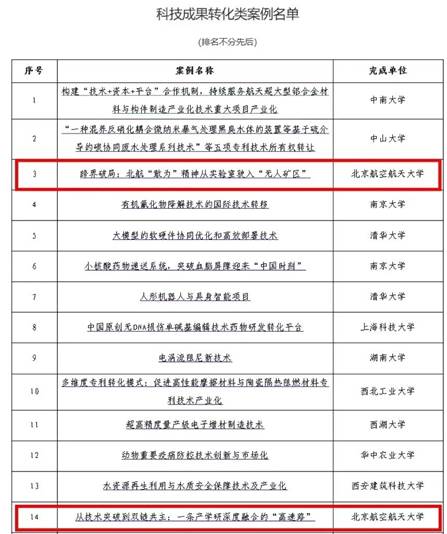 北航新闻网3月10日电(航宣)近日,教育部高等学校科学研究发展中心正式发布2025年度高校科技成果转化典型案例,我校共有3项成果成功入选,入选数量位居全国高校前列。其中“跨界破局:北航‘敢为’精神从实验室驶入‘无人矿区’”与“从技术突破到双链共主:一条产学研深度融合的‘高速路’”入选科技成果转化类案例;“北航构建‘师生敢创’成果转化体系”入选体制机制创新类案例。